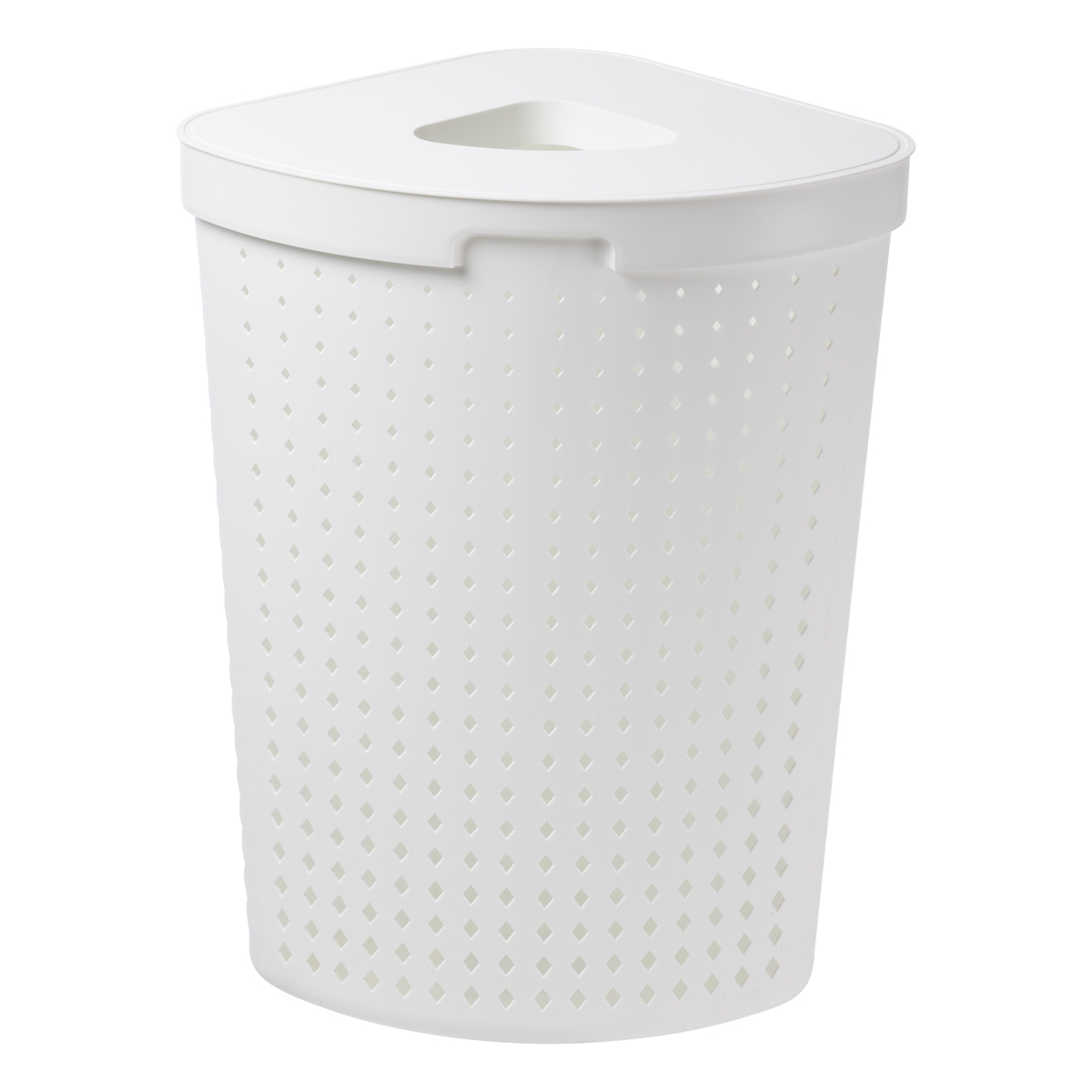 Kosz narożny na pranie z linii SEOUL o prostych kształtach inspirowanych stylem skandynawskim. Łączy w sobie praktyczne rozwiązania z wyjątkowym designem. Ergonomiczne uchwyty ułatwiają przenoszenie. Kosze dostępne są w 3 wersjach kolorystycznych. Otwory w kształcie rombu nadają mu nowoczesny charakter i półprzezroczystość.